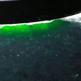 木那老坑翡翠原石,全脱沙冰绿色,墨翠料子,超棒完美级品色料!大切面完美无纹裂,种水在高冰种以上,这种料色太浓啦。阻光厉害,而且也不好拍照,这种料拍照需要辅助环境光,否则的话相机感光不足颜色怪异,环境光强了以后又会严重影响透光长度,这料实际已经达到高冰种以上,上面那个小盖子比较明显,在那上面因为可以对面对透看得清楚,是明显的玻璃效果!这料种份实际已经逼近玻璃种!再看外观,在边缘上有条短纹,其他整个主体完美无纹裂!纹裂可以说是翡翠之殇啊,越是高种的越容易纹裂多,反而生底的砖头公斤料没什么纹裂,色料高种又无纹裂的,几年看不到一次,这料底子油性十足,成品漂亮得不得了,一个大戒面就可以价值15万以上,懂行的朋友都知道冰种墨翠等同于冰种满绿的价值,有隐色效果,自然光下高黑度,光线强了就是冰绿色,号称低调的奢华,男士佩戴方形墨翠戒面,低调而霸气!很多朋友都想收藏,但是网上这些墨翠多数都是蓝水,而且纹裂,底棉,色浮,各种问题多多,即使有实力的玩家也不敢轻易出手,偶见正点的价格都是几十万的开,本店特殊货源,料子品质大正!价格平易亲民,喜欢级品墨翠色料又有实力的朋友,这个料就是您的收藏终点!一石在手夫复何求,一旦错过我不敢说后悔终生。。反正再收到同品质料的几率基本是0了。。。祝君好运!!